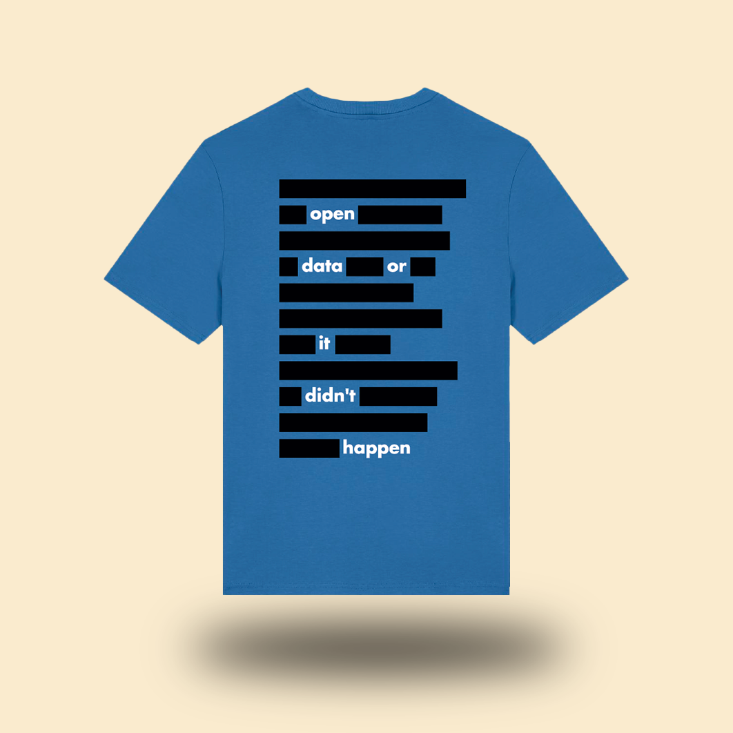De t-shirts zijn van biologisch katoen en worden duurzaam bedrukt. Daarmee laat je zien dat jij ook deel uitmaakt van de groeiende groep mensen die meer transparantie wil van de overheid!